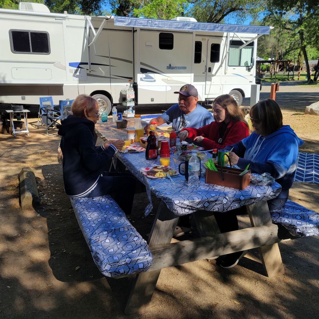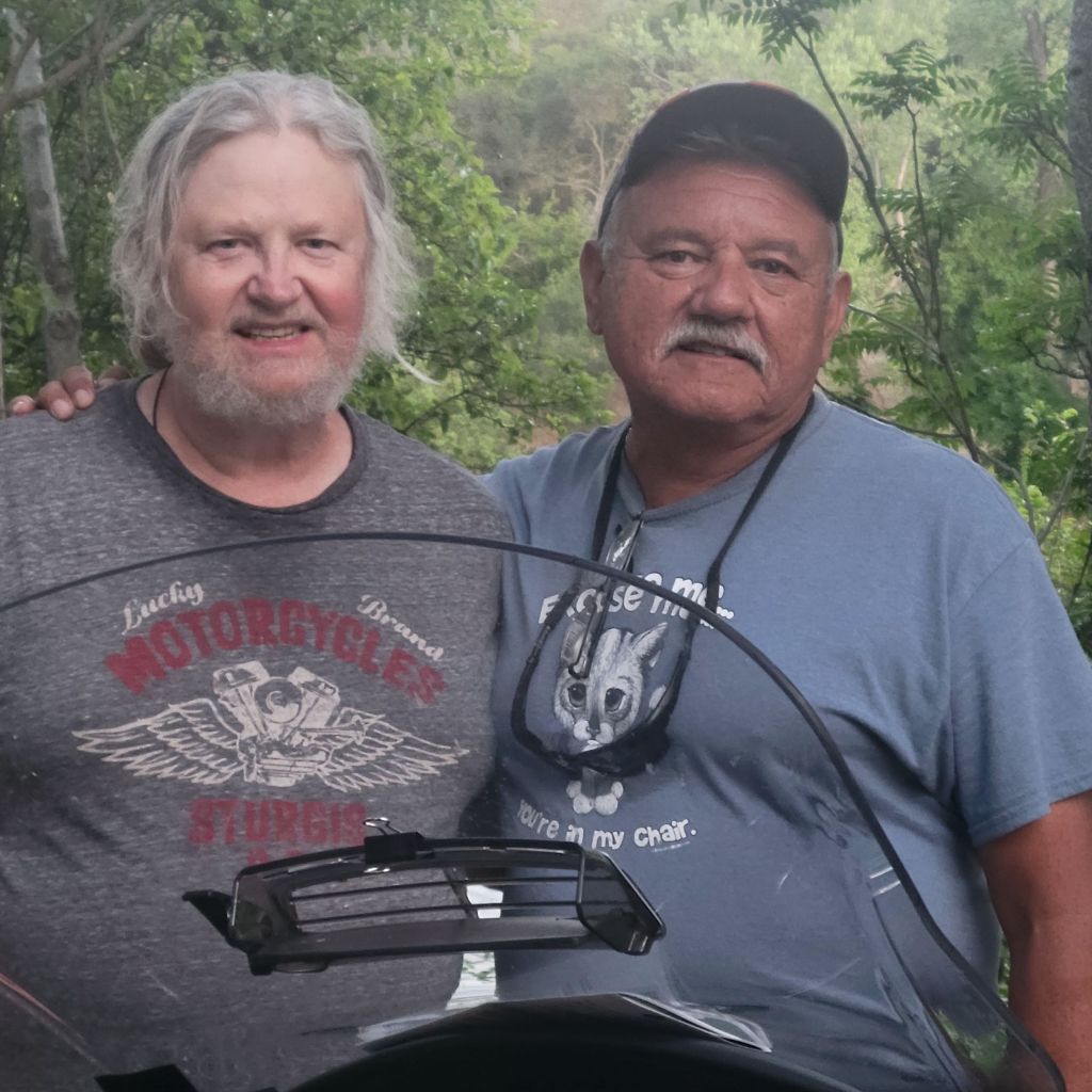 Landed in Coloma CA. Yes that is 4 state on the first day. Sitting by the American River. Found a good buddy from 40 years past. He was camping along the American River in Coloma.