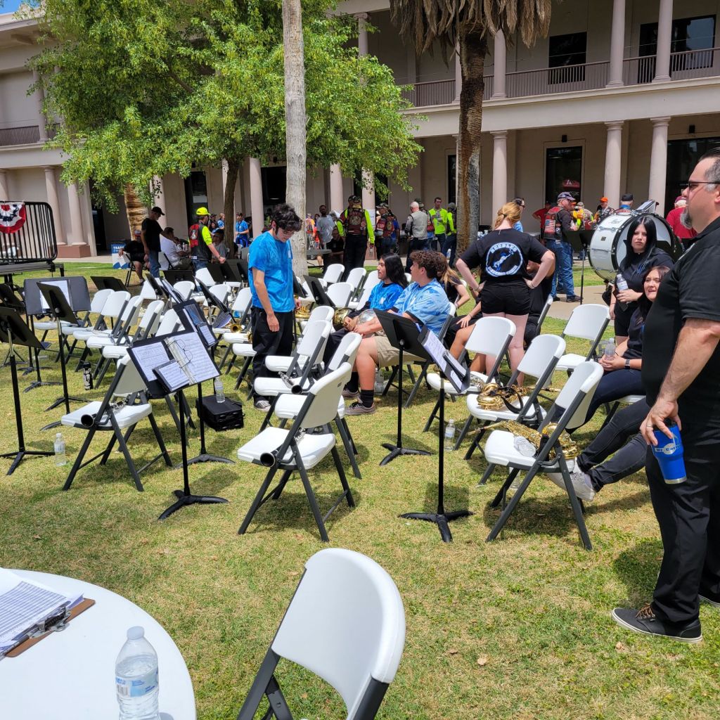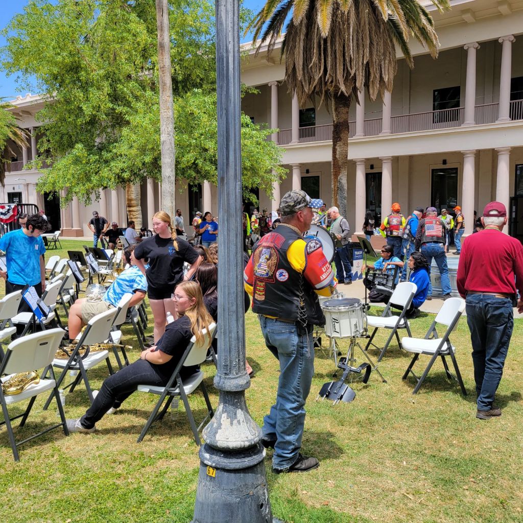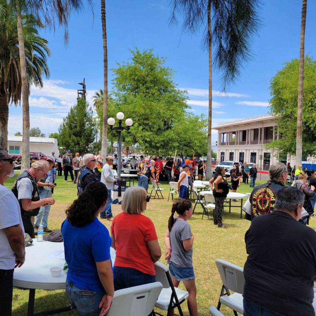 We get lunch at Santa Fe park supplied by the chamber here in Needles. Not on my list of places to live but great people out in the street supporting us.