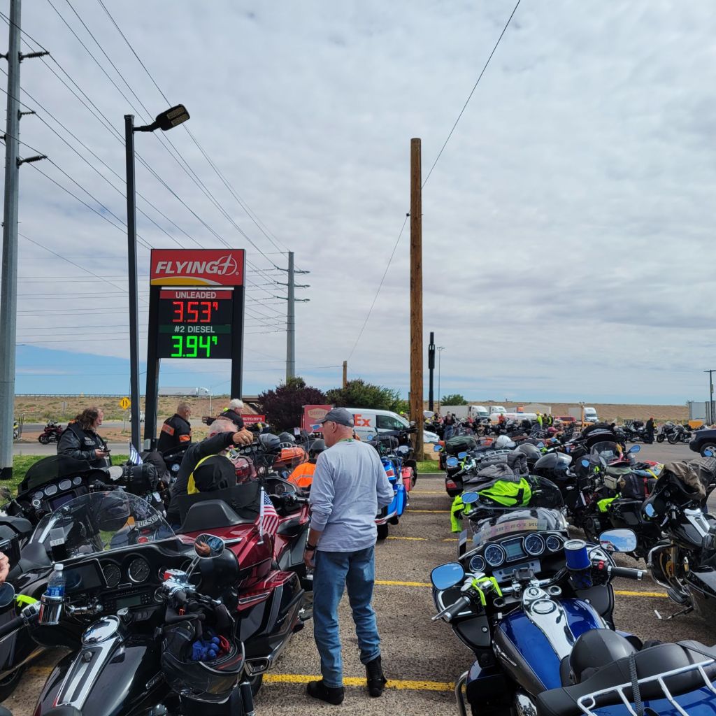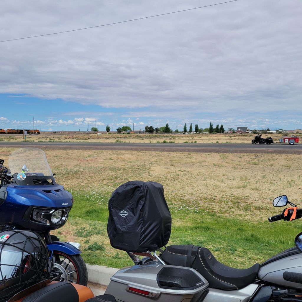 Day starts off @ 6:00 AM for staging. Chief and I are first ones there so we line up behind the platoon leaders. Best spot if your not the leader. Hit the road for a 90 mile trip to Winslow. Rode through the corner but not time to be “standing on a corner”.