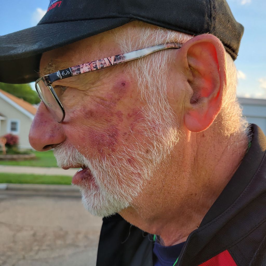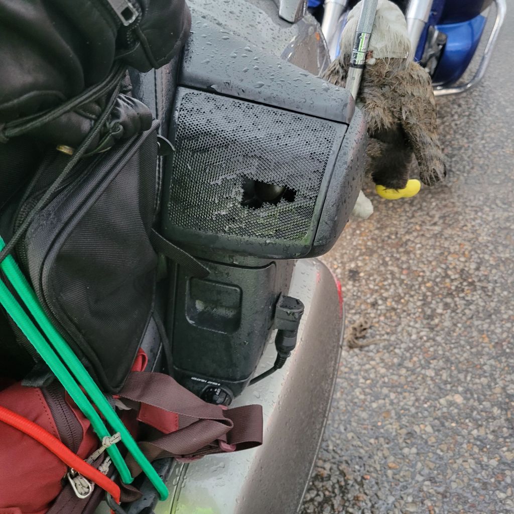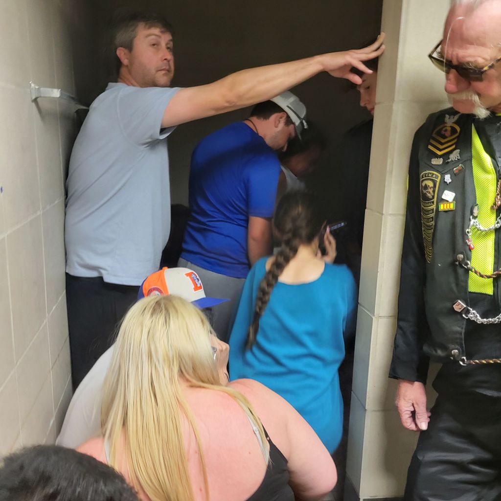 Here we are in Bunker Hill Kansas. We spent about 30 minutes riding in the biggest hail I have ever seen. Just praying we may all be safe. we made it are final gas stop for the day. About halfway through we were sent indoors to a tornando shelter. The blue was the eye of the storm. The town next door just got clear. Govt. Warning for this spot. A few riders stopped at underpasses. Pipes went missimg but she was at the underpass with her dad.