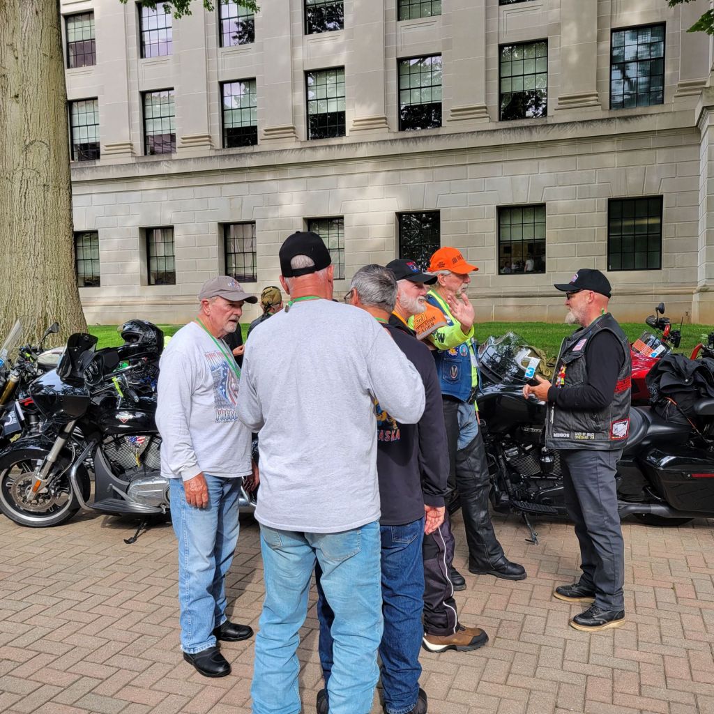 This day starts with a great leg riding beside Papa right behind the Platoon Leaders. After the first fuel stop Chief and I tap out and hi-tail it to the hotel. There we deal with dirty clothes and went everything. All good so it’s like we are starting the ride anew. We do meet back up for meeting and chow at the post in wentzville. Glad to have dinners with the boys. NY steak new potatos and salad. Every meal seems to come with so many home desserts the people in these towns must think we are addicts. I had a small piece of pinapple upside down cake for our daughter Lauren. Sorry Lo ate it all. Then comes a little one offering strawberry cake. Please have a piece Mr. I made it with my mom.