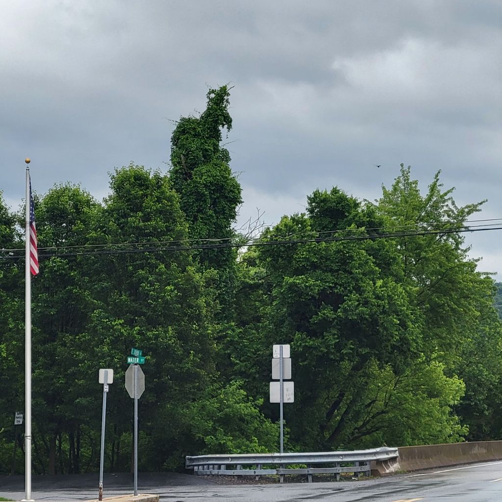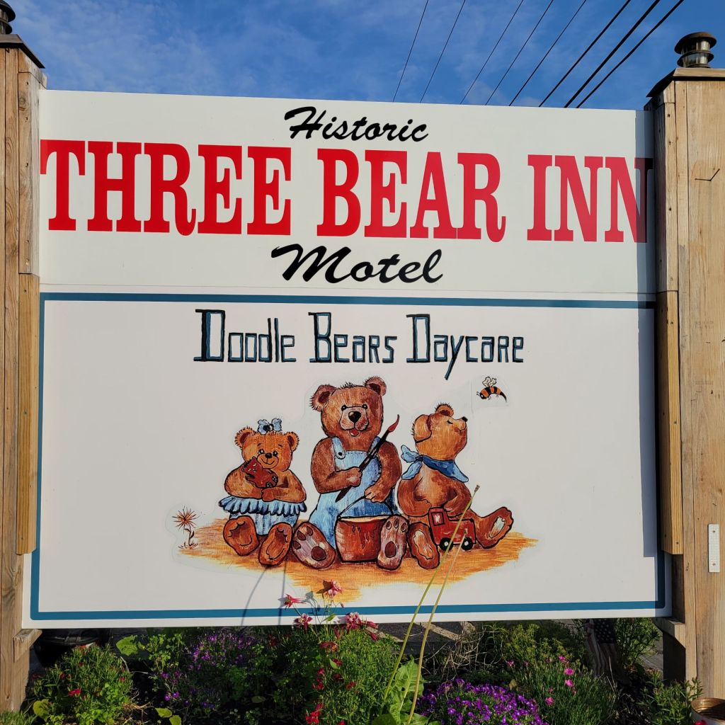 After a bit connected with I-80 for a few minutes to I-81. Thought of Mifflin Dunder as I was flying through Scranton. I used 81 to make some miles. About 25 miles short of NY went to backroads again. Came into Binghampton on 29. Thought it was time to call it a day. Playing between drizzle and rain camping is out for tonight. Riding around Binghampton for about 30 minutes I finally figured out this is a hotspot for Bad Boys and real PD type series. Decidedto keep going just a bit further. Sun came out after some overly salty lasagne so checked out a campground. Riding through the place was almost as bad as the tornado. A lot of RV’s but tent spaces were pretty much swimming pools. So I rode on. Ended in Marathon at the Historic 3 bear inn.