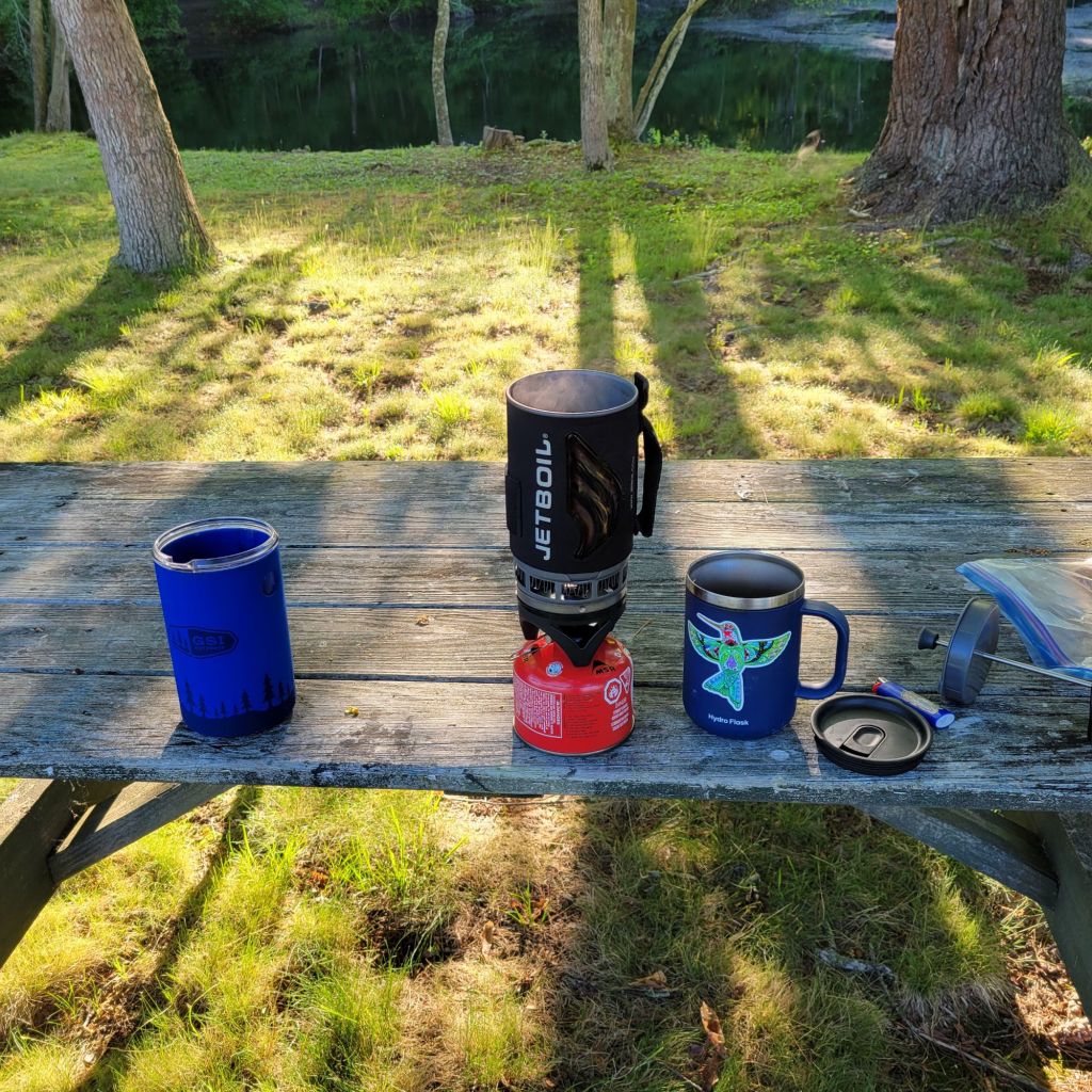 June 1 coffee and power bar at the campsite. 337 miles yesterday. Total 5,472
