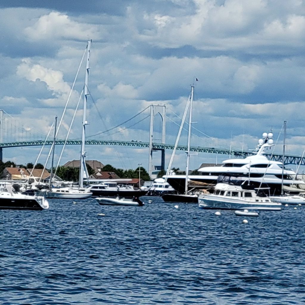 First this this morning my chef from last night came by. He thanked for riding in the Run for the Wall then handed me the $40 bucks his boss charged me for my campsite. By the time I got on the road I was in Rhode Island. Nice 2 laner with almost no other vehicles. Then a minute later I found everyone. Then with the zoo crossed the Jamestown bridge. A few seconds later the Newport bridge.