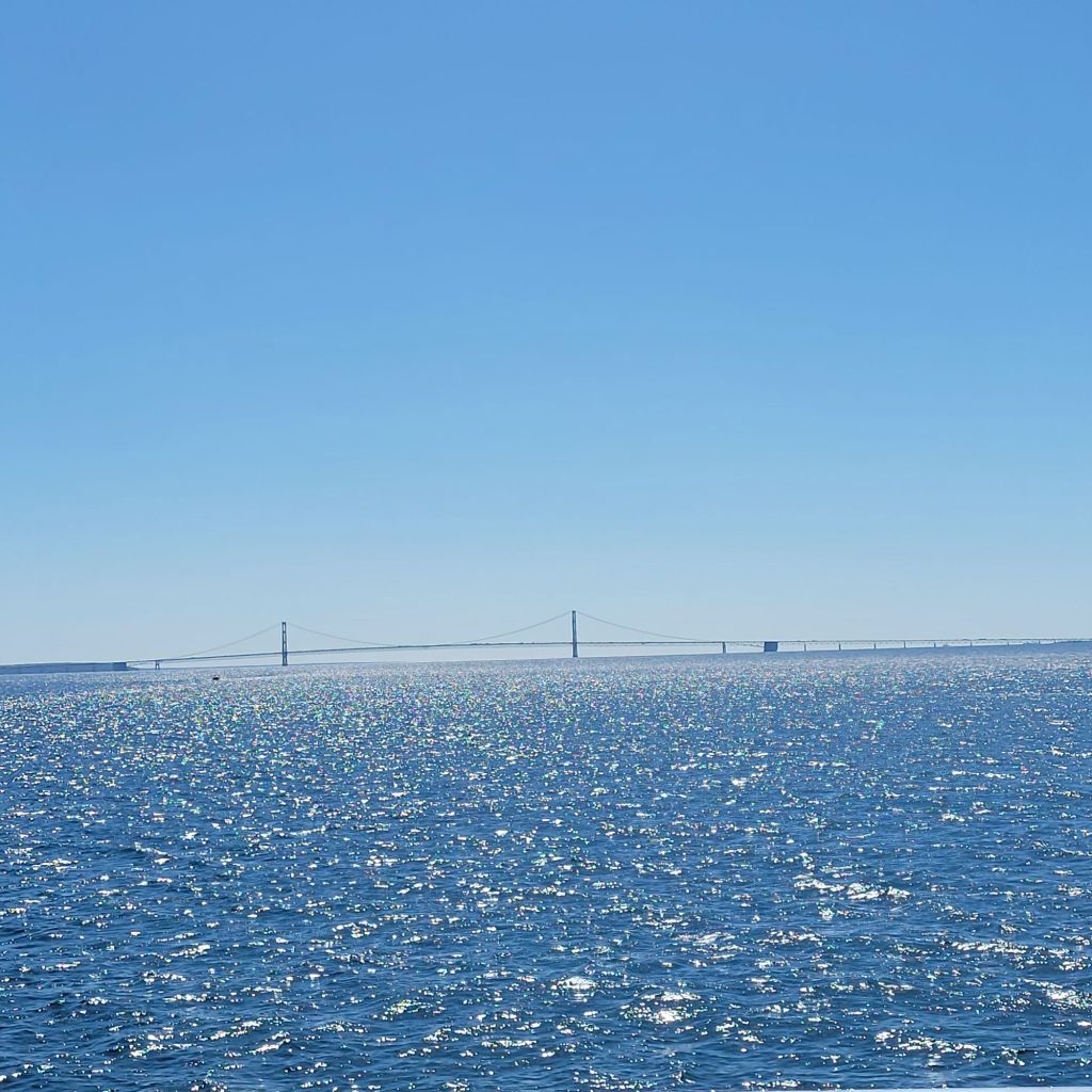 The straights at the bridge seperate Lake Huron from Lake Michigan.